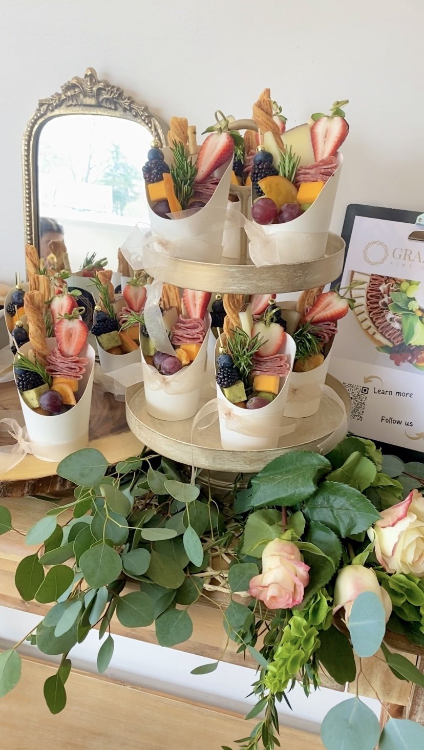 Our festive, colorful and fun charcuterie cups add decor AND flavor to intimate gatherings, small store openings, and times when you need to feed the crowd. 10 cup order minimum.